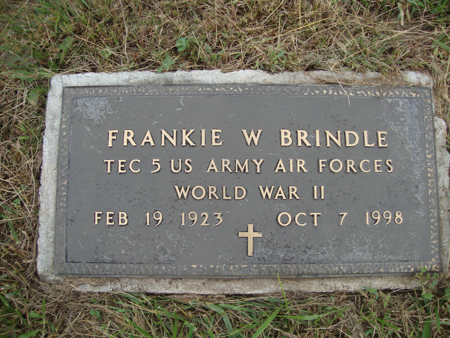 Veteran Frankie W. Brindle, 75, Rockport, Mo., formerly of Craig, Mo., died Oct 7, 1998, at a health care center in Rockport.