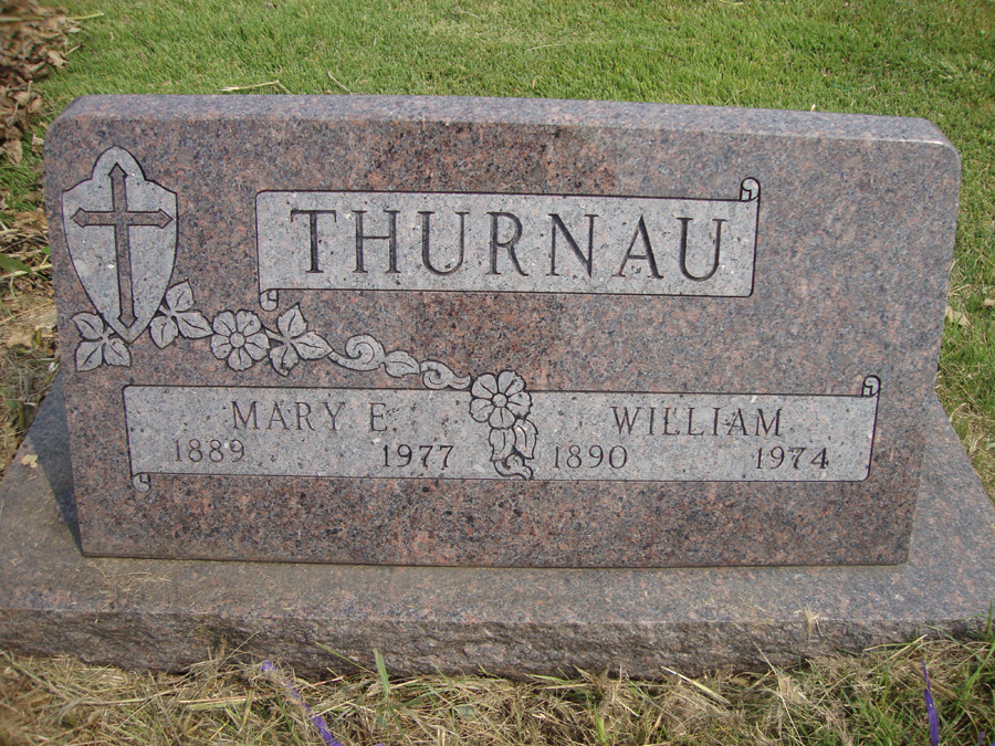 Thurnau, William William ThurnauBorn Apr. 8, 1890Died Sep. 14, 1974 Burial LocationArea:wSection:xlot:yplot:t-897 SpouseMary (Heine) ThurnauBorn 1899Died Jan. 4, 1977 FatherJohn Henry ThurnauBorn Aug. 7, 1861 in Chicago, ILDied Jul. 23, 1961 in Craig, MO MotherThalka (Harms) ThurnauBorn Jun. 10, 1869 in Craig, MODied Apr. 18, 1951 in Saint Joseph, MO
